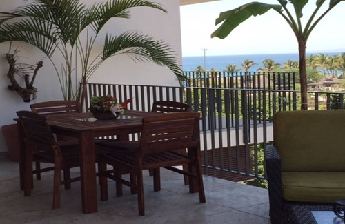 This condo has a wonderful terrace that wraps around the building, designed as such, so that one can step out of any room and enjoy the fantastic views. As a matter of fact, there are no windows! Sliding glass walls that, when open, create a fabulous open air, larger feeling to the entire living space. It's like living outside. We've had it decorated with lively bright happy colors, so indicative of the old Mexican culture, but with a contemporary flair to it creating a flow intermingling the two. The condo is set up for 2-4 persons sleeping capacity. A queen bed in the bedroom, with a fold out double in the living room.