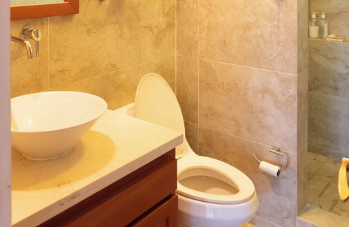 Our home is tucked away from all the hustle and bustle of Quinta Avenida. To make your way to the exciting strip from our home, you walk (20 min or 7. min. drive) through the cobblestoned lined streets, passing Mayan ruins to make your way to El Paseo del Carmen, a "cosmopolitan" shopping mall with a Starbucks, Zara, Oakley, Old Navy, Sunglasses Hut, Carl's Jr Pandora and many more. Connected to this mall is La Quinta Avenida, a short five min walk through the mall gets you to the strip and the famous "Fundadores Park," which is also connected to the ferry port to go to the island of Cozumel. In short, our home is surrounded by all the essentials.