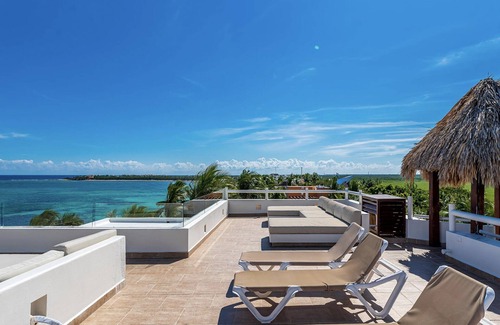 With amazing views of the ocean and jungle, 5 bedrooms, 5 bathrooms, and a full-service staff on hand around-the-clock, Villa Aventura is an impressive property. The architecture of Aventura features rich, handcrafted furniture, marble floors, high ceilings, and a blend of Spanish and Mexican styles. Villa Aventure has six bedrooms, one of which is the master suite with a Jacuzzi and views of Soliman Bay.