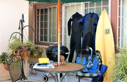The unit has its own private entrance from the street where you can park your car, walk through the gate into your private patio and enter into the Casita. You will be provided with a 4-digit code to access the keys to the doors. Use of the private patio includes table with umbrella, chairs, and BBQ. snorkel gear, 4 beach towels, 2 sand chairs, and ice chest available for your use. Feel free to relax on the patio and have your morning coffee or your late night beverage of choice after a long day of exploring Baja California. SMOKING OUTSIDE ONLY.