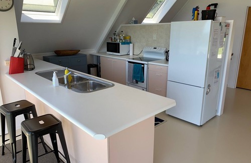 There are two upstairs bedrooms. One contains a king-size bed and its own toilet. There is room for a cot in this room if required; and there is a porta cot available. The other bedroom sleeps four and contains a queen size bed and a bunk bed with two king singles. The downstairs bedroom sleeps 4 and contains a Queen size bed and one bunk bed with two singles. Also located downstairs is the laundry, a separate toilet, bathroom with a bath and a separate shower room. There is also a lovely sleep out with a queen bed that sleeps 2 this is available for an extra cost per night across the whole stay.