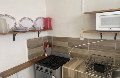 Nuestro departamento cuenta con 2 habitaciones, 1 con una cama matrimonial y la segunda recamara con 1 litera y una cama individual y un baño completo, ademas cuenta con sala, comedor y cocina, ademas de un pequeño patio trasero en donde cuentas con un lavadero.