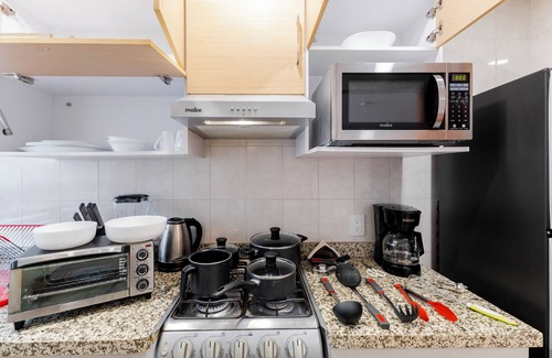 Newly renovated boutique building with private parking, 24 hour security, elevator and controlled access. Our rooftop has a grill, tables and sun umbrellas to enjoy a good barbecue. It also has billiards and TV area to chill after a hard working day or a day out exploring the city. There is an equiped gym so you can keep in shape during your stay. There is a laundry room with 4 washing machines and dryers to keep your clothes sparkling clean.