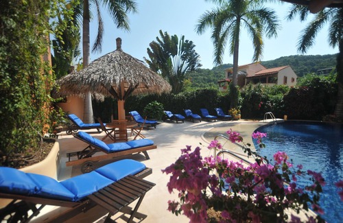 El Mango is located inside the compound of Villas Los Arcos. The moment you enter the private, walled compound your magical vacation begins. A mere 150 meters from the south end of the world renowned Playa La Ropa, Zihuatanejo s premier beach, Villas Los Arcos offers you the ultimate in traditional Mexican living. Minutes from the beach, fine restaurants, and old town Zihuatanejo, this property is in area with easy taxi and bus access. The huge infinity pool is complete with a playita (little beach) as well as cascading waterfall.