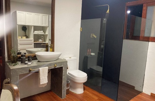 Desconecta de tus preocupaciones en este espacio tranquilo y sereno. Disfruta de aire puro en un estudio privado con cama matrimonial, baño independiente, cocineta, sala con chimenea, comedor y estacionamiento. A solo 35 minutos de CDMX y 10 de Cuernavaca, en el bosque, con un clima fresco. Transporte público accesible y flexibilidad en check-in/out. ¡Vive una experiencia única, ecológica y cómoda en la naturaleza!