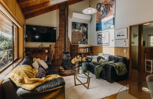 The farm house in all it's charming glory, boasts natural timbers throughout, giving it a genuine cottage feel. On arrival you will, be greeted to a homely comfortable environment of high ceilings, luxurious furnishings and interesting art which adorns the walls. Providing guests with a sense of stress free living at it's very best! Cook up a storm in fully equipped kitchen, come together in the open plan country style living area that opens beautifully to a wonderful alfresco patio. Garden lovers will be treated to rhododendrons and tulip trees which guarantee an abundance of flowering vista from July until November.