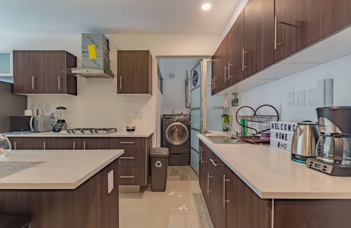 Modern comfy new Apartment, Two bedroom flat centrally located next to all public transport, at beautiful tree lined street, on foodie and art Mexico city mecca “Chapultepec-Roma”, enjoy the vibrant feel this lively location has to give, live in a brand new building with a one of a kind interior design apartment, with everything you need to enjoy Mexico city at its best, fits for Big Groups, the living room has a double sofa bed, all new all premium and super bright, jump in for a fantastic stay.