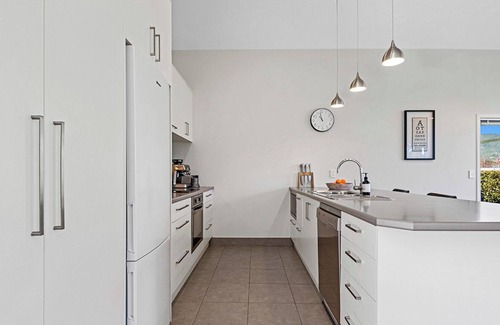 Loch Haven is a single level, 3-bedroom, 2-bathroom spacious home with open plan kitchen-dining area designed with indoor-outdoor flow onto a choice of patios so you can follow the sun all day long. The floor to ceiling glazing in the dining looks directly across the greens of the Kinloch golf course with the landscaped garden and mature planting, ensuring privacy right around the house.