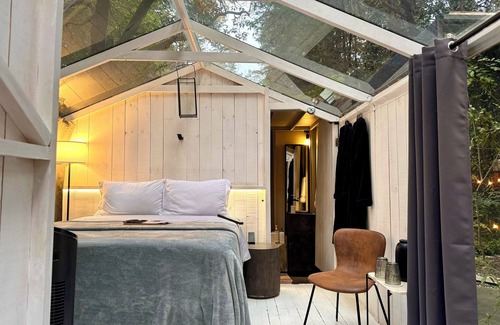 Vivir la experiencia en cabaña de cristal para personas que les gusta relajarse en medio de la naturaleza sin tener que salir de la ciudad a 5min Santa Fe. Cabaña de 9m2 baño priv. wifi Smart tv. Ubicada en un área de 450m2 en donde se encuentran otras cabañas las cuales comparten áreas comunes. fogata, proyector salas y comedores de jardín. costo extra jacuzzi/sauna/decoración