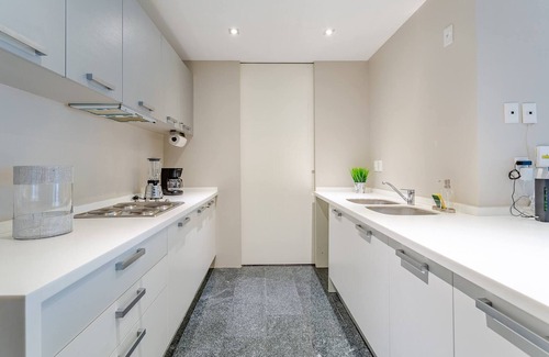 The apartment has a large kitchen equipped with a coffee maker, blender, oven and all the cooking utensils so you can enjoy a pleasant breakfast, lunch and dinner, it has an elegant dining room so you can enjoy your dinners and a large smart screen with internet access where you can run any of your applications, it has a high table so you can enjoy a wine or a coffee, it has an excellent King size bed, it has some armchairs so that you can accompany them with an excellent book or simply relax. You sit down to listen to music, it has a large dressing room and a large bathroom, it has a hair dryer. The apartment has air conditioning and everything you need to make your stay as pleasant as possible. The apartment does not handle gas, only electricity, which makes it largely safe. And the area is incredible, in the heart of Cdmx, it is the best area in the City. You can walk to many attractions, you can rent a bike or if you want to go further, you have first-class public transportation that passes right in front of the building.