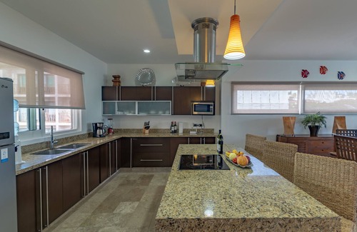 Sunny, spacious floor plan with great views and a perfect location! Just a one-block stroll to the white sands of exclusive Mamitas Beach, and a stone's throw to Playa's quaint restaurants, boutiques, and nightlife on 5th Avenue. Enjoy all the amenities of the two public beach clubs at Mamitas Beach: chair/bed rentals, bars, restaurants, restrooms, spa services, volleyball and swimming pools. With 1,500 square feet indoors and another 1,100 square feet outdoors, this flat has plenty of room to spread out and relax! Travertine floors, granite countertops, Weber gas grill, and air conditioning are just the beginning of the list of luxuries you'll find here. This end unit boasts oversized balconies off of the living room and bedrooms. In true penthouse style, the incredible roof top solarium includes a splash pool, half bath, and outdoor shower. The complex also features secure and private underground parking.
