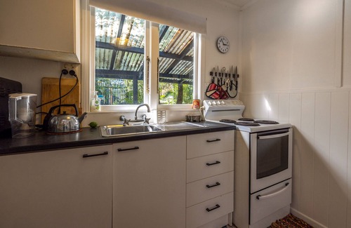 Perfect for a relaxing holiday by the sea! This classic Waiheke bach is nestled within mature native bush and so close to the ocean you can hear the whisper of waves as they caress the shore. Here you have peace and privacy in the most romantic of settings. Little Oneroa beach is within reach when you venture forth, inviting you to a daily dip or a stroll along the golden sands, while the children play in the nearby playground. Ice creams and fish and chips and dragon fired pizzas await at your doorstep. Welcome to Paradise!