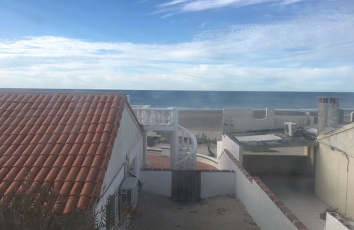 This apartment is on the second floor with only stair access. It is located behind the main house and is steps (about 50) to the beach. The main house is beachfront. We do not rent the beach house and encourage our guests to use the beachfront patio of the main house (pictured).