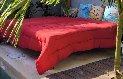 The Cenote is a perfect place to vacation, unwind, and relax. Inside the room you are greeted with a 120 inch projector screen with roku and Netflix access. Enjoy the comfort of a queen size bed for a good night's sleep. The room is equipped with a coffee maker, microwave, blender, mini fridge with small freezer and a hair dryer. A large walk in shower is a plus. Open the curtains next to the bed to reveal a deck and gorgeous view of your own private pool in a jungle serene, tranquil environment. Enjoy a book on the lounge chairs next to the pool or enjoy sunning on a queen size outdoor bed. Massages can be scheduled in the room or near the pool. When ready for a little more activity take the stairs to the beach area where you can enjoy the beach pool, large deck, king size outdoor bed, lounge chairs, kayak, paddle board, surf board or boogie boards, snorkel gear or a dip in the gulf. Catch a sunset or sunrise. Whatever your vacation needs are.