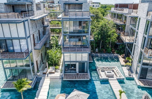 710 sqft / 66m2 double-height lateral loft located on 1st and 2nd floor: This very luxurious and exclusive swim up property is located close to the beach and Tulum Center, sun loungers area, and 24/7 security.